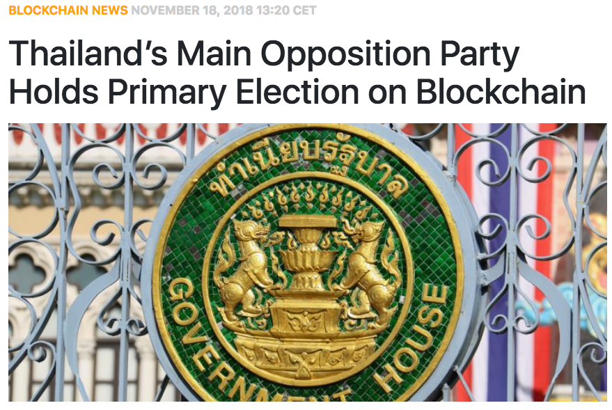 The world’s first blockchain-based political election was held in Thailand last month using the Zcoin privacy token, (XZC).