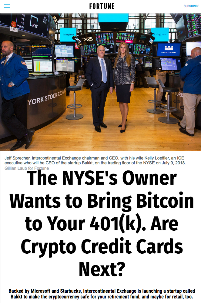 The fact that the owners of the New York Stock Exchange (ICE), are launching a new crypto-asset exchange in Q1 of 2019 called, Bakkt...