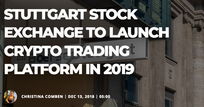 Following ICE, Germany’s second-largest stock exchange, Boerse Stuttgart Group, is set to launch a cryptocurrency trading platform in the first half of 2019 with SolarisBank.